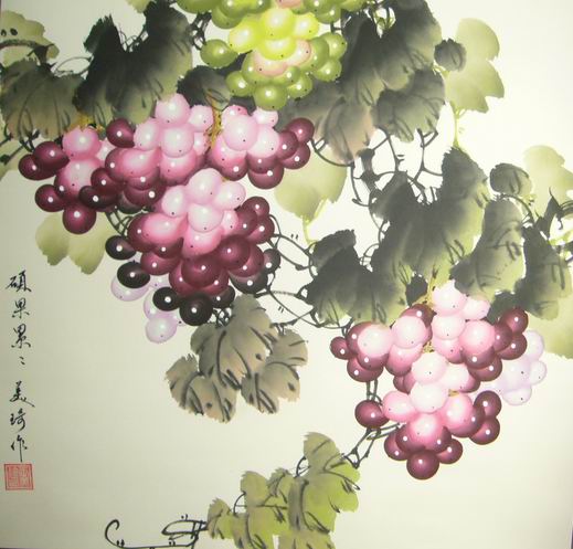 • 产品简介: 四尺斗方葡萄,王美琦老师四尺斗方葡萄作品,已装裱。