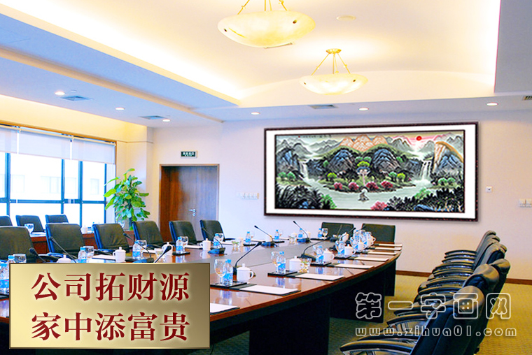 聚宝盆:此画是第一字画网推荐的风水画佳作。刘淋老师整幅作品根据风水布局、满含鸿运当头,财运如浩浩瀑水,生生不息之意。作品整体看来象个金元宝。远山层峦叠峰,更表达了源远流长的意境。因此挂山水画是非常吉利的。将此风水画悬挂于厅堂,立添主人财气,令人一见即生舒适安逸之感,获人兴财旺之效。青山绿松间配上了瀑布流水,不仅给画面增添了灵韵和动感,更表现了一种财源滚滚,源远流长的吉祥意义。非常适合家居,企业正堂装挂及馈赠亲朋好友的上佳之选~!!!