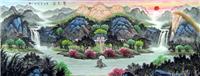 风水画聚宝盆作品:瀑布寓意:“财源滚滚”;