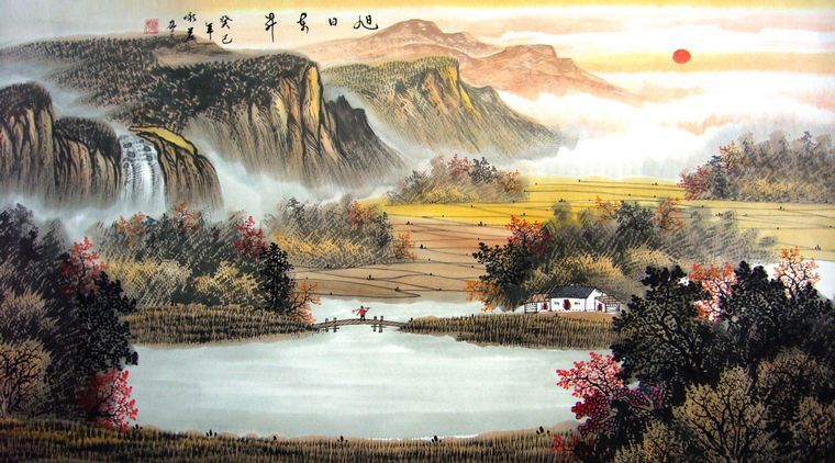 3)三尺国画山水