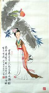 • 产品简介: 唐代仕女图,齐鲁画家韩梅四尺工笔人物画佳作,已装裱。 仕女,这个名词代表着古代美丽聪慧的女子,也是古今不同时代画家所热衷描绘的对象,人物画中有专门的仕女画类别,历代画家合并者按照自己心中美的理想来塑造仕女形象,这幅唐代仕女图是齐鲁画家韩梅老师的人物画系列作品,四尺宣纸精绘而成,背景、构图、神态、题字都看出了韩梅老师的用心。