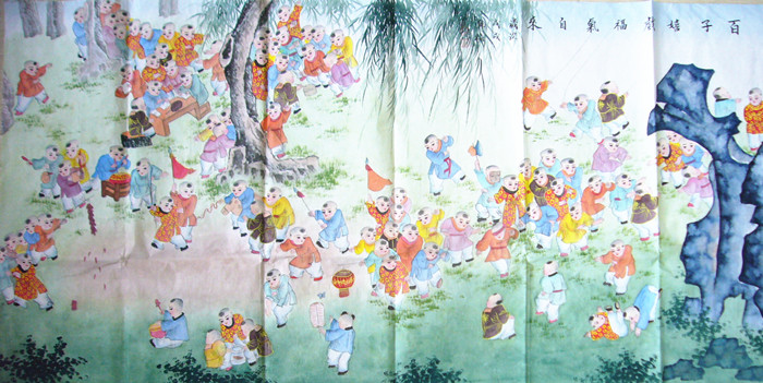 第一字画网的国画百子图,四尺国画百子图裱完后长度约在1.8米左右,作品画法细腻、画面中涌动着一派生机,挂在家里的客厅或是会客室是很不错的选择,寓意吉祥喜气,如果放在画廊出售,画家韩梅此幅国画百子图的标价在6500元左右。百子图,我们也叫它百子迎福图、百子闹春图、百子戏春图。在中国传统文化中有它的一种特定含义。由于“百”含有大或者无穷的意思,因此把祝福、恭贺的良好愿望发挥到了一种极至的状态。