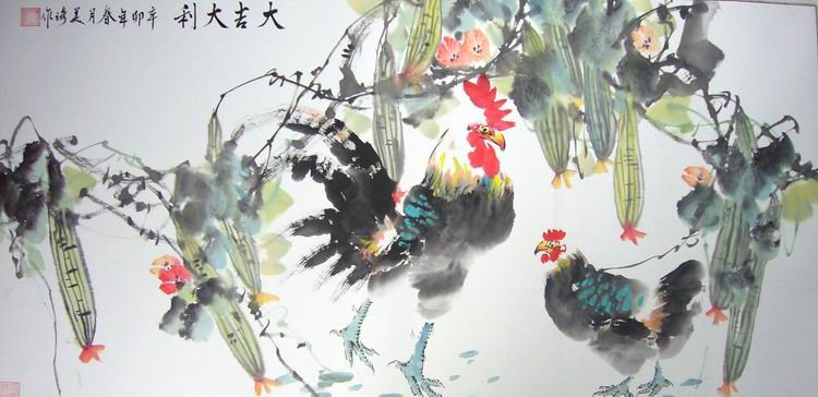 第一字画网的花鸟画大吉大利,这幅四尺双鸡水墨画给人一种积极向上的朝气,裱完后长度在1.8米左右,作品寓意大吉大利,挂在家里客厅、卧室或是送人都是非常不错的选择,如果放在画廊出售,王美琦老师此副花鸟画大吉大利裱完后的标价在1200元左右。
