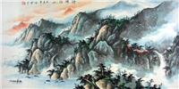 第一字画网的国画客厅山水画,这幅泰山日出画裱完后尺寸近1.8米左右,是一幅清新雅致的国画客厅山水画作品,清新秀雅,布局合理,这幅山水美景视觉效果上佳。如果放在画廊出售,一门人老师此幅四尺国画客厅山水画的标价在2600元左右。