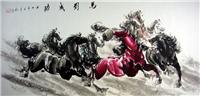 第一字画网的水墨画八骏图,作品整体气势磅礴,尽显马之神韵,裱完后的长度达到1.8米左右,这幅国画水墨八骏图挂在家里的客厅或是公司的会议室都是非常气派,送人也是很不错的选择。如果放在画廊出售,永浩老师此幅水墨国画八马图的标价起码在1500元左右。