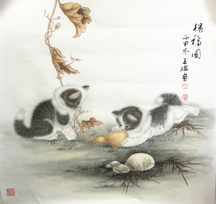 王瑞,1963年出生于山东省菏泽市,自幼酷爱书画,自幼学习国画,1981-1983毕业于山东艺术学院,王瑞老师主要成就新工笔画法;在国画发展历史年间,他一直不断求索,创新国画工笔画法,新国画工笔更是能活灵活现的展现每幅画的精髓。他画过各类动物,大川山水,牡丹画卉,仕女人物,佛像长图,古代皇帝及达官贵人像等。特别是新工笔国画动物,让人叹为观止。代表作有《山羊开泰》《小猫戏图》《双骏图》《牛年大吉》《齐鲁乡情》作品多次参加国内的大展,并被中国美术馆、山东美术馆,江苏美术馆、等收藏