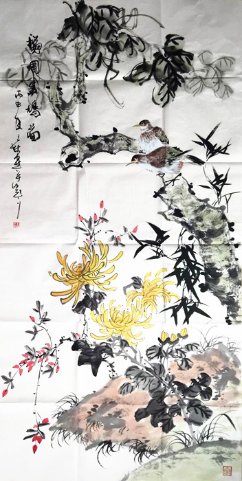 • 产品简介: 玄关装饰花鸟画,四尺作品。