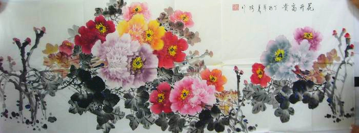 第一字画网新到的国画写意牡丹画,数量只有唯一一幅,这幅小六尺写意牡丹画画风细腻、挂在餐厅、客厅、书房都可以,如果放在画廊出售,王美琦老师此副四尺对开牡丹画作品装裱后的价格大约在1800元左右。