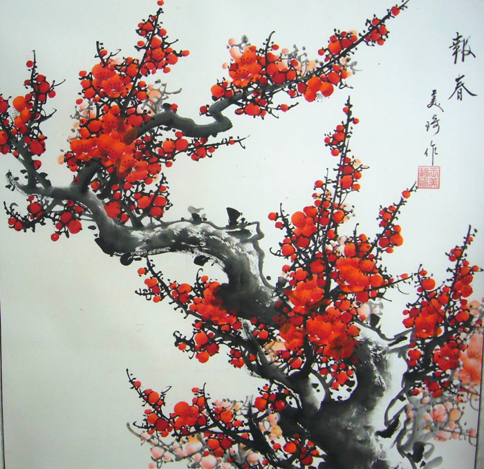 • 产品简介: 四尺斗方国画红梅,美琦老师梅花作品。