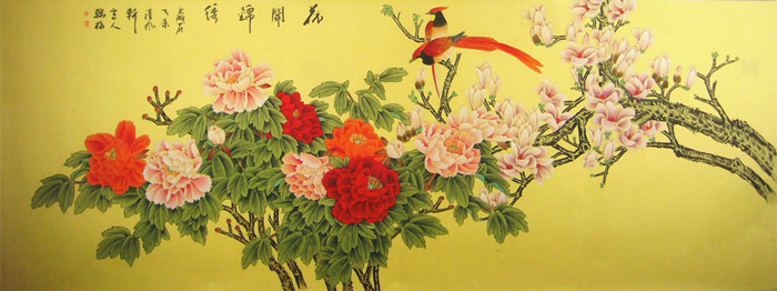 • 产品简介: 八尺工笔画富贵牡丹,韩梅老师作品。