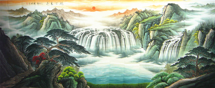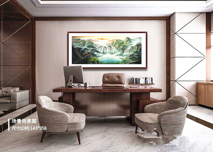 第一字画网的聚宝盆流水生财《旭日东升》,数量只有一幅,售完即止。大丈二旭日东升山水画是一幅大气磅礴的办公室客厅山水画,画芯的尺寸就达到了3.5米长,十分的雄伟壮观,作品气势磅礴、画功细腻,是一副精美的聚宝盆山水画适合挂在大型的会客厅、或是宴会厅,气派非凡,并能彰显档次,如果放在画廊出售,刘淋老师此幅旭日东升的标价起码在9000元左右。