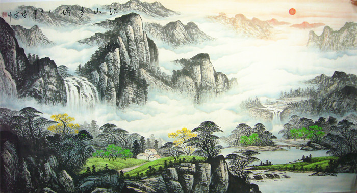第一字画网的六尺山水作品,适合作为客厅装饰山水画,挂家里的客厅十分大气,同样也可以挂公司的办公室或会议室等场合。办公室字画山水画若裱完后长度将达2.2米左右,是一幅清新秀雅的山水作品,作品意境生动、山水交汇,如果放在画廊出售,林云老师此幅六尺客厅装饰山水画的标价在2800元左右。