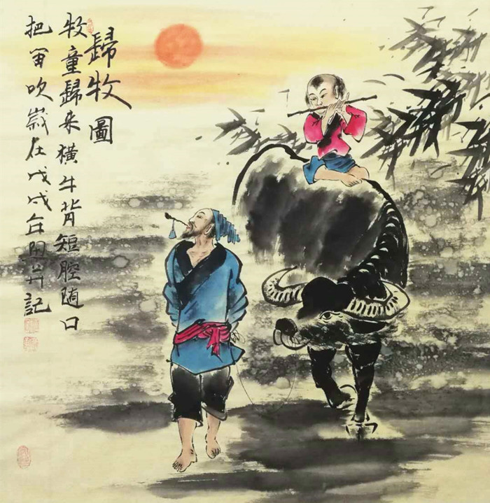 • 产品简介: 写意国画牛图《归牧图》,奕勇老师作品。