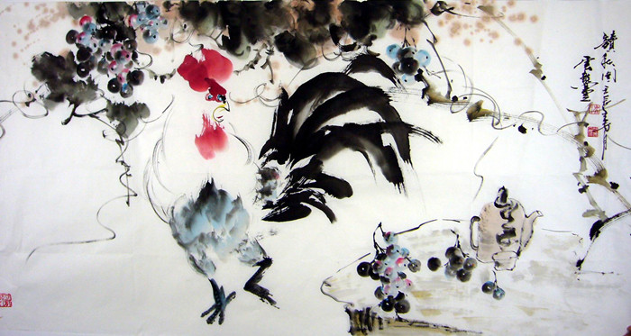【尺寸】写意公鸡葡萄图
