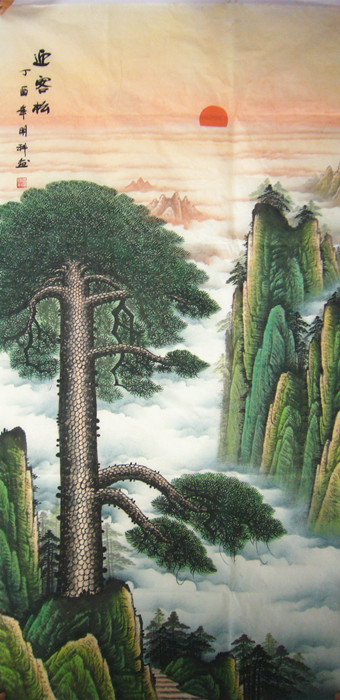 第一字画网国画迎客松山水画,这是一幅意境优雅的山水作品,作品山水交汇、意境深动,有一派生机勃勃的景象,适合挂在家里的客厅、或是挂在公司的办公室,如果放在画廊出售,王咏茗老师此幅四尺竖幅国画山水的标价在1500元左右。