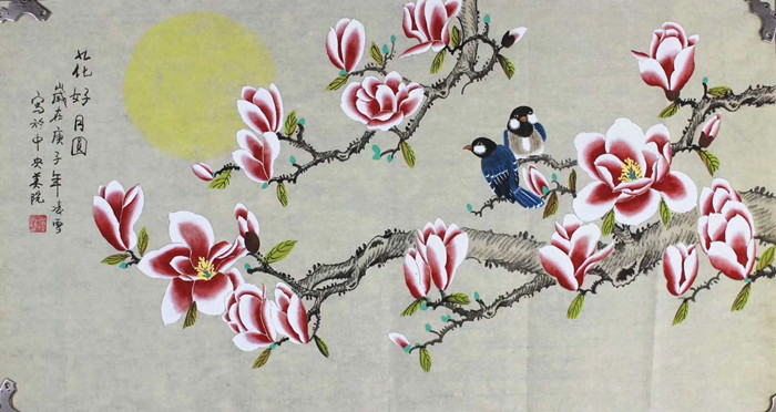 国画花鸟画《花好月圆》