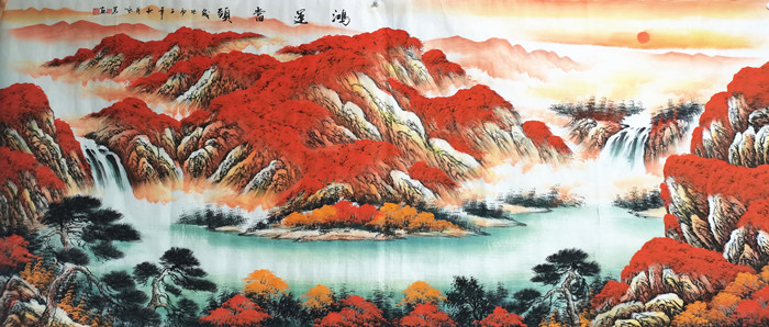 秋山万里,万山红遍,层林尽染,气势磅礴,意境寥廓。宏火巨制,匠心独运,寓意吉祥,实乃难得收藏之精品,办公室客厅挂画之大气之选。“鸿运千秋”可寓国运兴旺昌隆,福泽千秋万代, 又可意家道运势,聚福纳财,百代兴旺。绝对是居家好风水装饰画的首选