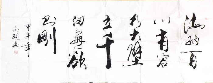第一字画网的林则徐自勉联海纳百川,适合挂在公司的办公室,或是家里的客厅,这幅六尺书法海纳百川是广西书法家甘正砚老师的作品,用的是小六尺宣纸,装裱后长度约在2.2米左右,作品笔法老练苍劲大气,如果放在画廊出售,甘正砚老师这幅六尺林则徐自勉联海纳百川的价格大约在2000元左右。