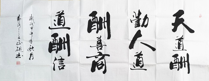 • 产品简介: 办公室励志书法天道酬勤人道酬善商道酬信,甘正砚老师作品。