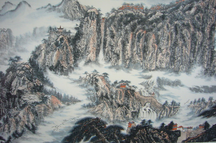 小八尺国画靠山图泰山