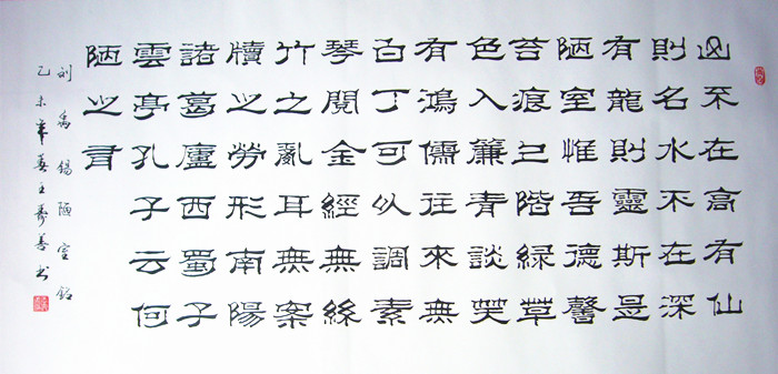 第一字画网的四尺陋室铭书法作品,是用隶书完成的刘禹锡经典诗词,这幅四尺陋室铭书法作品装裱后长度达到1.8米左右,作品笔法老练,苍劲有力,如果放在画廊出售,山东书协寿善老师此幅陋室铭书法作品的标价在1800元左右。