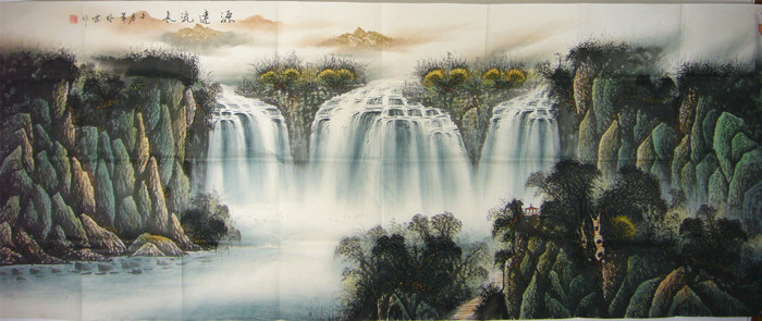 第一字画网的客厅山水画源远流长,小八尺山水画作品画芯长2.4米,是一副意境深远的小八尺山水作品,作品清新秀雅,布局合理,这幅山水美景视觉效果上佳,题字为源远流长。如果放在画廊出售,林云老师此副小八尺山水画作品的标价在4000元左右。