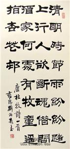 第一字画网的书房诗词书法,适合挂在书房或会客厅等不同的场合,这幅书房诗词书法装裱后长度约在1.5米左右,作品老练大气,如果放在画廊出售,演信法师此幅行书书房诗词书法的标价大约在1500元左右。