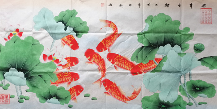 【尺寸】荷花鲤鱼图九鱼图