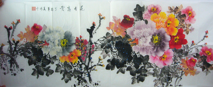 第一字画网新到的客厅写意福贵牡丹画,数量只有唯一一幅,这幅小六尺写意牡丹画画风细腻、挂在餐厅、客厅、书房都可以,如果放在画廊出售,王美琦老师此副小六尺牡丹画作品装裱后的价格大约在1800元左右。