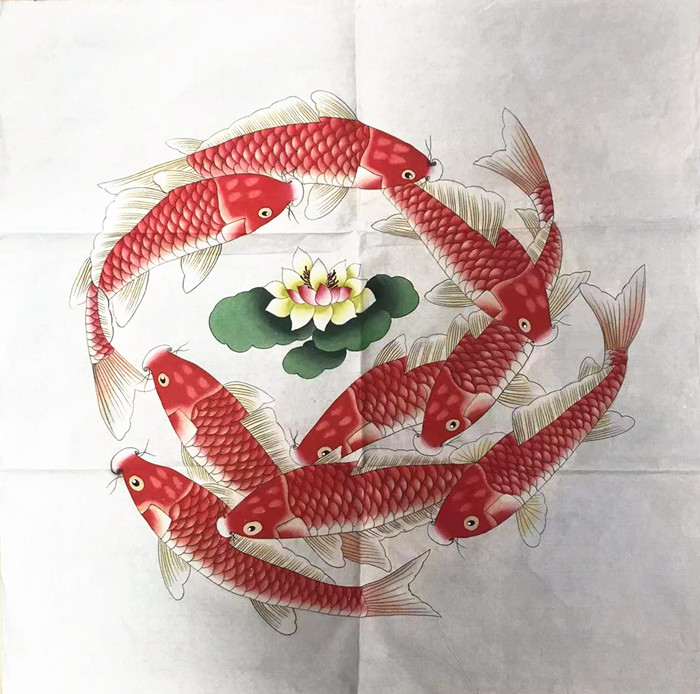 四尺斗方九鱼图