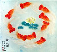 • 产品简介: 四尺斗方九鱼图