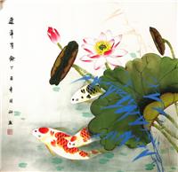 第一字画网的四尺斗方九鱼图,这幅四尺斗方的玄关画九鱼图装裱后尺寸为0.8米左右,是一幅非常温馨的作品,作品画风细腻、栩栩如生,十分雅致。挂在家里客厅或公司的会客室都是非常不错的选择,亦可用作送礼等场合,如果放在画廊出售,诸葛明科老师此幅工笔玄关装饰国画的标价在2000元左右。