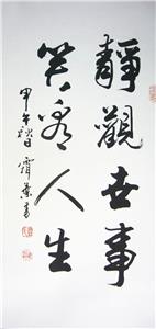 第一字画网的行书书法作品禅是幅适合用作办公室场合或书房的书法作品,这幅行书书法是湖北书法家郁桂龙老师的作品,装裱后尺寸为1米长,如果放在画廊出售,桂龙老师此幅名句书法作品的标价大约在1000元左右。