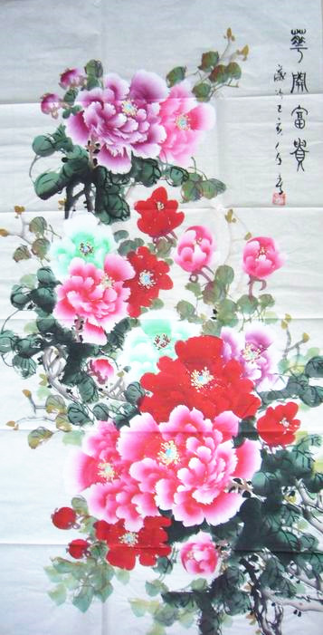 • 产品简介: 四尺竖幅牡丹图,题字为花开富贵,王柳春老师四尺作品。